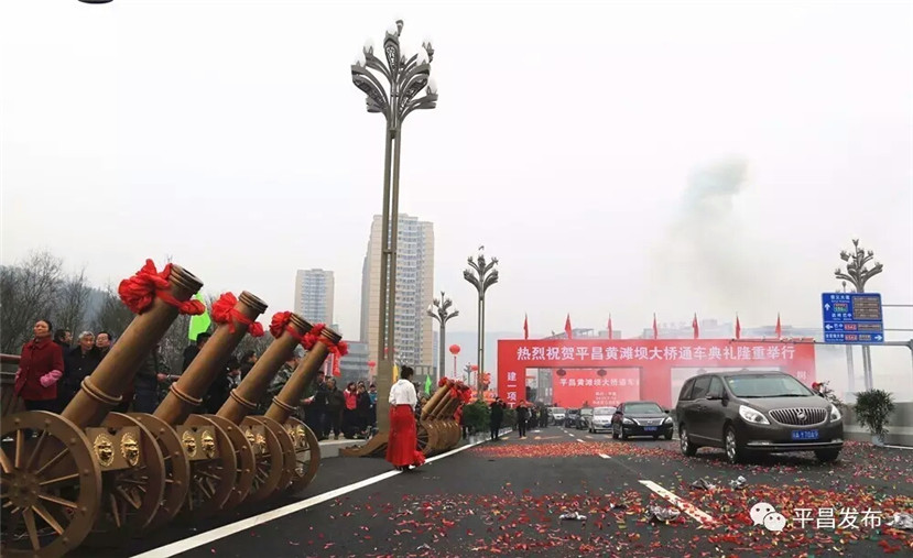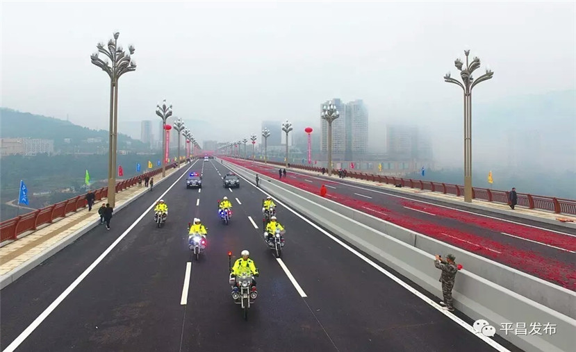 2017年1月16日,巴中平昌迎來盛大而隆重的黃灘壩大橋通車典禮。修建于2013年的平昌縣黃灘壩大橋,長936米、寬33米、雙向六車道連續(xù)T梁鋼構橋梁一座,概算總投資3.4億元。該橋既是鐵路平昌站連通巴達高速公路和縣城繞城路的樞紐工程,又是連接老城和新區(qū)的便捷通道,功能特殊,意義重大。