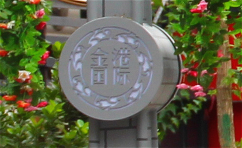 “民國風(fēng)情”燈外觀色彩呈鐵灰色,燈桿使用青磚紋飾,展現(xiàn)出民國時期建筑特點(diǎn),給人以素雅、沉穩(wěn),古樸的美感。三個燈頭采用西方庭院燈的馬燈造型,以顯示當(dāng)時社會的開放性。燈臂采用中國傳統(tǒng)的祥云紋飾,“祥云”文化概念在中國具有上千年的時間跨度,用于此處使其更具年代感。燈桿中下部的銅質(zhì)雕刻“金港國際”字樣,與地方方位名稱相得益彰,是整燈的點(diǎn)睛之處。