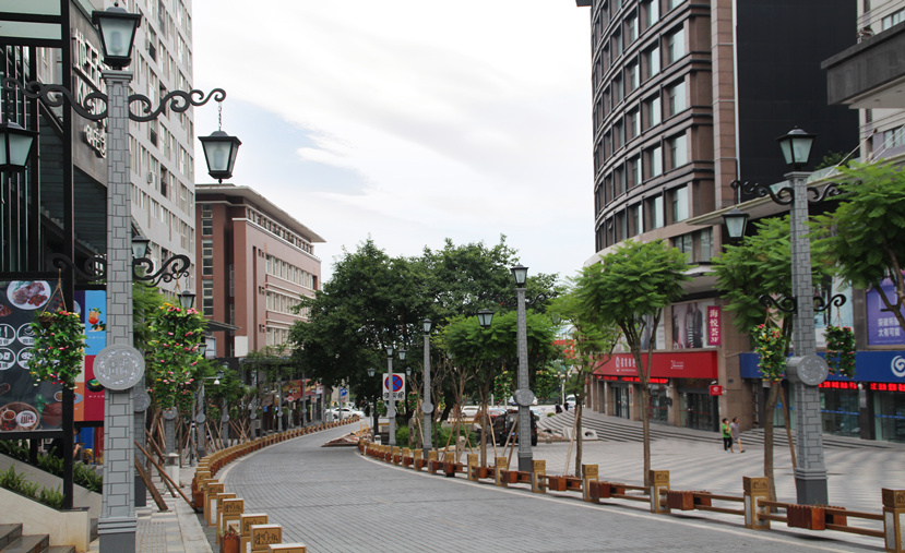 由于金港國際步行街屬于國際化綜合性商業(yè)物業(yè)區(qū),又距離重慶國際新機(jī)場較近,人流量車流量都很大,對燈光的要求較高?!懊駠L(fēng)情”燈高16.5米,主光源和裝飾光源皆采用LED,彰顯節(jié)能環(huán)保理念?!懊駠L(fēng)情”燈既滿足了步行街的照明需求,又顯示出濃郁的民國風(fēng)情,形成了獨(dú)具特色的城市景觀。