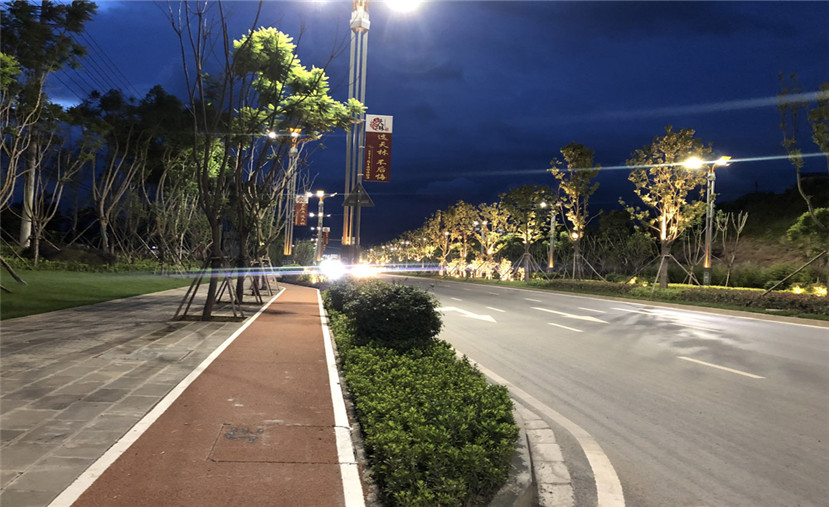 四川華體照明科技股份有限公司(股票簡(jiǎn)稱:華體科技 股票代碼:603679)有幸參與到該項(xiàng)目的路燈建設(shè)中,為業(yè)主方量身定制創(chuàng)意系列“流光溢彩”路燈近500套。“流光溢彩”燈型設(shè)計(jì)以簡(jiǎn)潔流暢的線條為設(shè)計(jì)元素,結(jié)合現(xiàn)代簡(jiǎn)潔的設(shè)計(jì)手法,提取流暢的線條,燈臂如展翅翱翔的翅膀,寓意城市蓬勃發(fā)展、日甚一日。