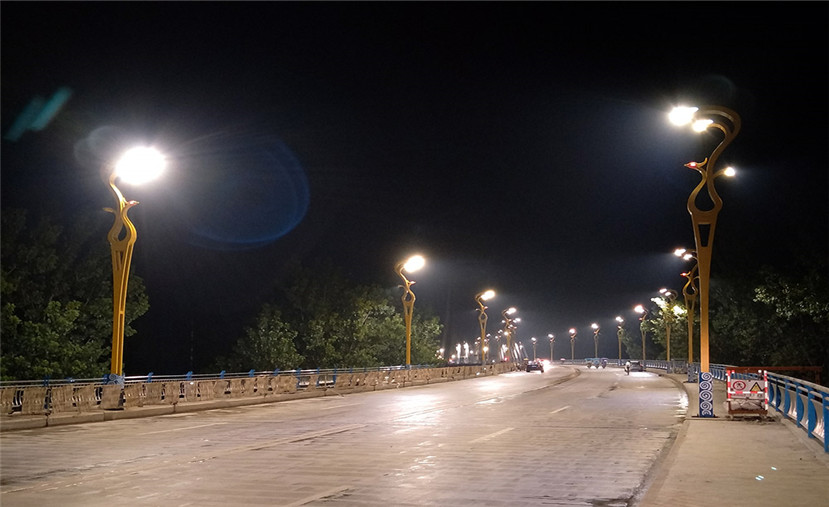 華體科技根據(jù)鳳臺縣名稱的由來,為鳳臺淮河大橋定制設(shè)計(jì)“鳳舞九天”文化路燈。