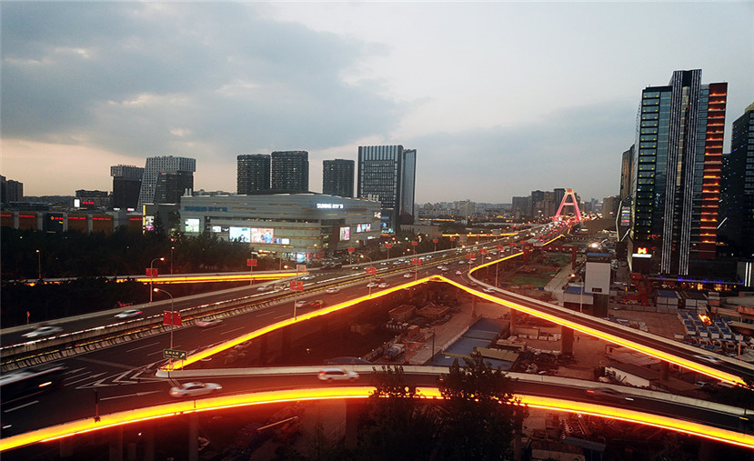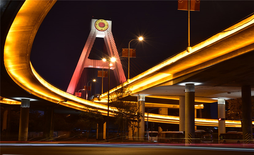 白天,天府立交宏偉壯麗;夜晚,則需要燈光來表現(xiàn)這個成都地標的美。
