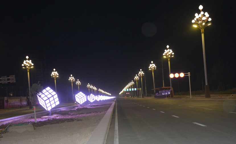 2015年6月,華體照明承接了新疆哈密市區(qū)主要道路路燈改造工程,該工程歷時(shí)4個(gè)月時(shí)間,于2015年10月結(jié)束。荔枝中華燈,即“花燈”,指的是多頭,植物造型的燈桿。該款燈在傳統(tǒng)中華燈的基礎(chǔ)上進(jìn)行了改良,保留其神韻,加入荔枝的元素,巧妙地將荔枝的形態(tài)與花燈完美結(jié)合。為表現(xiàn)哈密為“哈密瓜”之鄉(xiāng)的地域文化,此次燈型設(shè)計(jì)為四層荔枝的裝飾光源,從遠(yuǎn)處看其外形輪廓酷似哈密瓜,特別是夜間亮燈后,更是形態(tài)逼真,不僅為夜間市民的出行提供便利,更加提升哈密的城市形象。