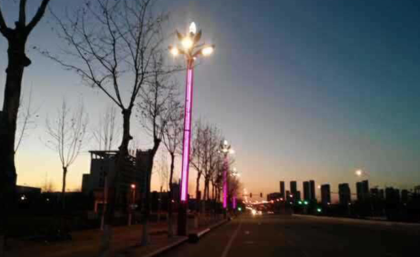 科技大道,位于煙臺高新區(qū),是煙臺“智慧城市”的試點區(qū)域。2015年底,春意盎然的到來為整個園區(qū)增添無限生機和活力。它寓意春季萬物復(fù)蘇,百花齊放,城市的經(jīng)濟蒸蒸日上。春意盎然高15米,主要是通過花卉造型進行抽象設(shè)計而來。燈桿中部加裝LED氛圍光帶,使夜間照明更加絢麗;燈體內(nèi)部安裝智能控制系統(tǒng),使照明高效節(jié)能、綠色環(huán)保,另外燈桿上安裝攝像頭,為路燈裝上“眼睛”,實現(xiàn)了多平臺的交互運用
