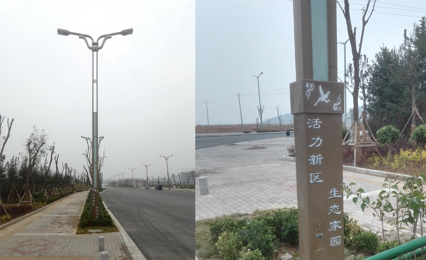 “鼎燈”以“鼎”的形式為基礎(chǔ),整體設(shè)計大氣,體現(xiàn)延安老革命精神的莊嚴,極具濃郁的地方色彩。桿體底部采用有機玻璃,底座有“活力新區(qū),生態(tài)家園”的字樣,表達對新區(qū)建設(shè)的美好向往。桿體中部加裝LED燈帶,七彩變色,豐富道路夜間照明。