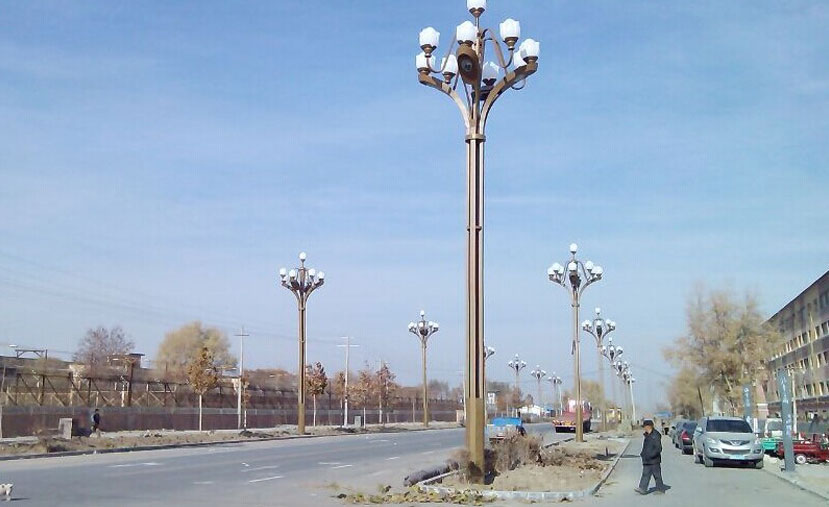 芙蓉中華燈,即“花燈”,指的是多頭,植物造型的燈桿。該款燈在傳統(tǒng)中華燈的基礎(chǔ)上進(jìn)行了改良,保留其神韻,加入新的元素,巧妙的運(yùn)用花瓣的形式,實(shí)現(xiàn)了燈桿與燈頭的實(shí)體鏈接。華燈初上,幸福路上芙蓉花開(kāi),給市民夜間出行帶來(lái)便利,營(yíng)造出溫馨浪漫的氛圍,照亮阿拉爾人民的幸福生活。