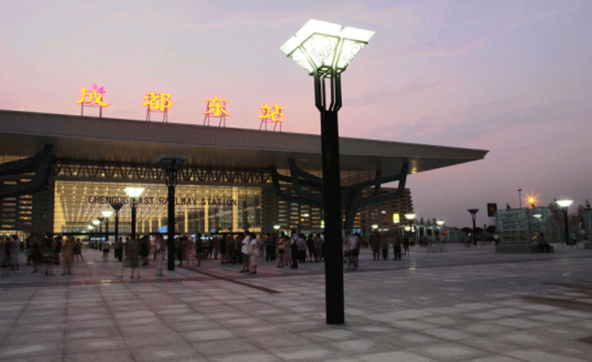 成都東站使用的是景觀燈“耀”。該景觀燈時尚、大氣而又具有復古氣息。