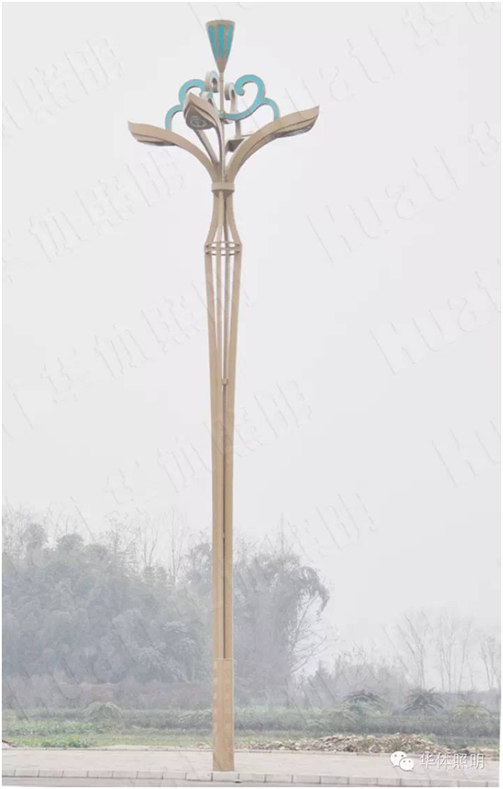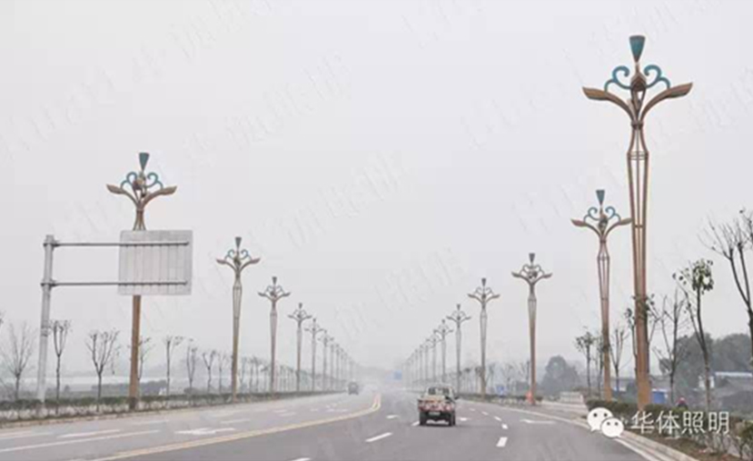 瓦屋山是古蜀著名的道教仙山,而在道教中蓮是修行者的象征,是翩翩君子的象征,因此本次景觀照明路燈選取了蓮花植物造型,并命名為金荷。2014年9月,由華體照明傾力打造的139盞金荷整齊的安裝在瓦屋山大道兩旁。金荷燈高15米,采用花瓣與燈臂的結(jié)合,燈具頂部“蓮蓬”生動形象,花紋流暢,將蓮花的婉約風姿展現(xiàn)得淋漓盡致;燈桿底座激光陽刻“綠海明珠,天府花園”字樣,底部融入水紋式樣,復(fù)古生動,似蓮生水中。