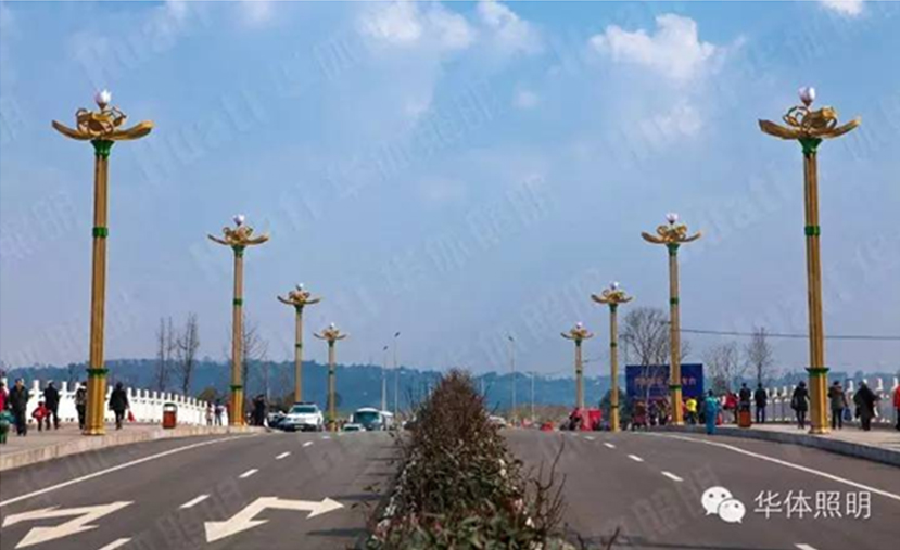 四川眉山市老泉橋,是連通眉山城區(qū)與東坡島的重要交通樞紐,也是東坡湖上一道亮麗的風景線。2014年12月,華體照明為老泉橋增添—“金荷羅裙”景觀照明路燈。