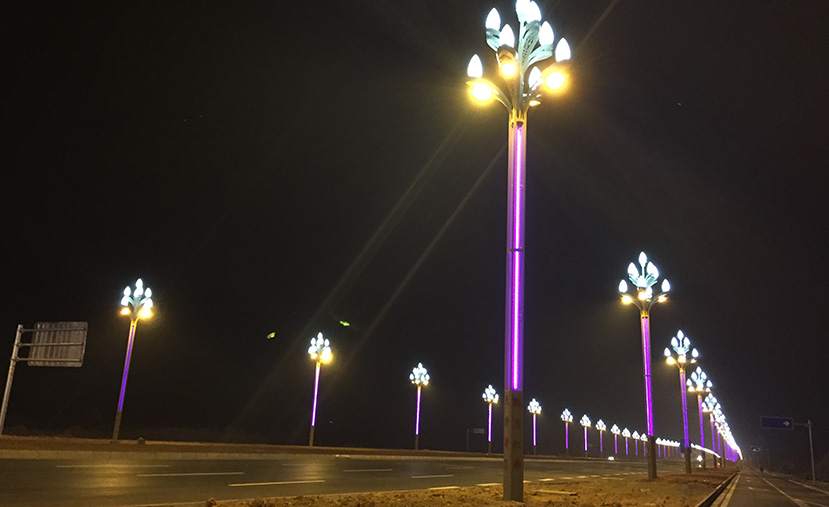 該款燈桿體內(nèi)加裝了節(jié)日氛圍燈,既保留玉蘭燈的美觀外形,又能在節(jié)日中增添祥和的歡樂氣氛。燈桿底座印有 “天府新區(qū),魅力仁壽” 鮮紅醒目字樣,成為新區(qū)道路的一道亮麗風(fēng)景線。