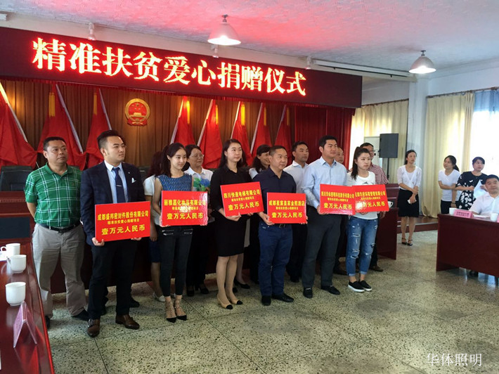 2016年5月20日上午,雙流區(qū)(公興)“精準(zhǔn)扶貧愛(ài)心捐贈(zèng)”儀式在公興街道辦事處舉行,區(qū)委常委、統(tǒng)戰(zhàn)部部長(zhǎng)、總工會(huì)主席蔣莉,區(qū)委統(tǒng)戰(zhàn)部常務(wù)副部長(zhǎng)潘萬(wàn)春,區(qū)委統(tǒng)戰(zhàn)部副部長(zhǎng)、區(qū)工商聯(lián)黨組書記杜小娟等領(lǐng)導(dǎo)出席儀式。四川華體照明科技股份有限公司董事長(zhǎng)兼總裁梁熹受邀參加捐贈(zèng)活動(dòng)。據(jù)悉,此次捐贈(zèng)活動(dòng)共籌集善款32萬(wàn)元,區(qū)紅十字會(huì)將設(shè)立專門賬戶進(jìn)行管理,確保精準(zhǔn)放款。
