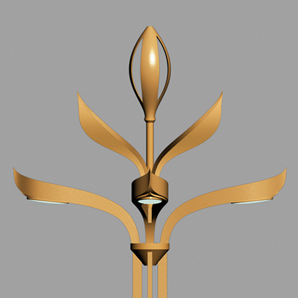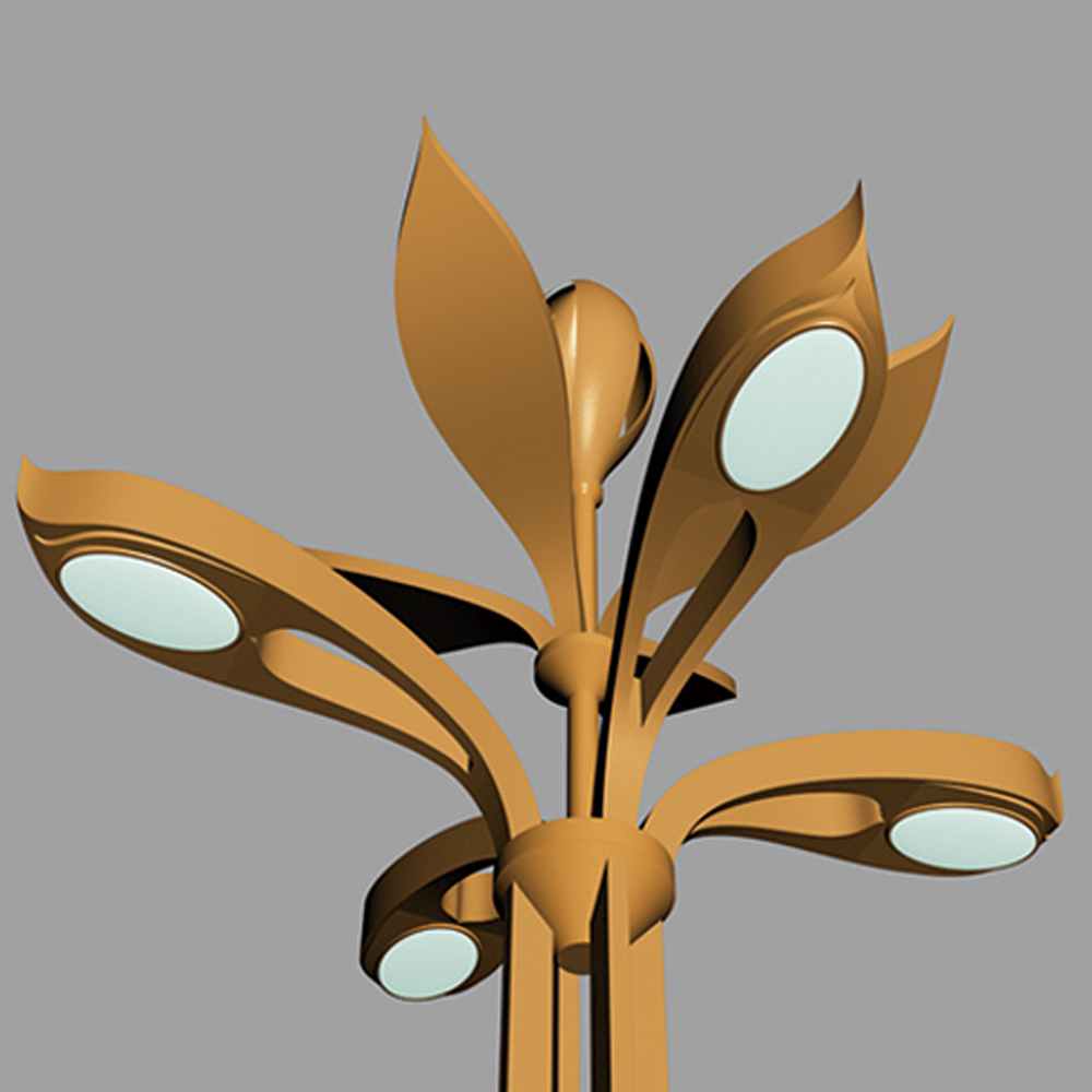 燈具的設(shè)計(jì)主要通過(guò)花卉造型進(jìn)行抽象設(shè)計(jì)而來(lái),結(jié)合現(xiàn)代工藝轉(zhuǎn)化為集景觀與功能照明為一體的戶(hù)外照明工具;