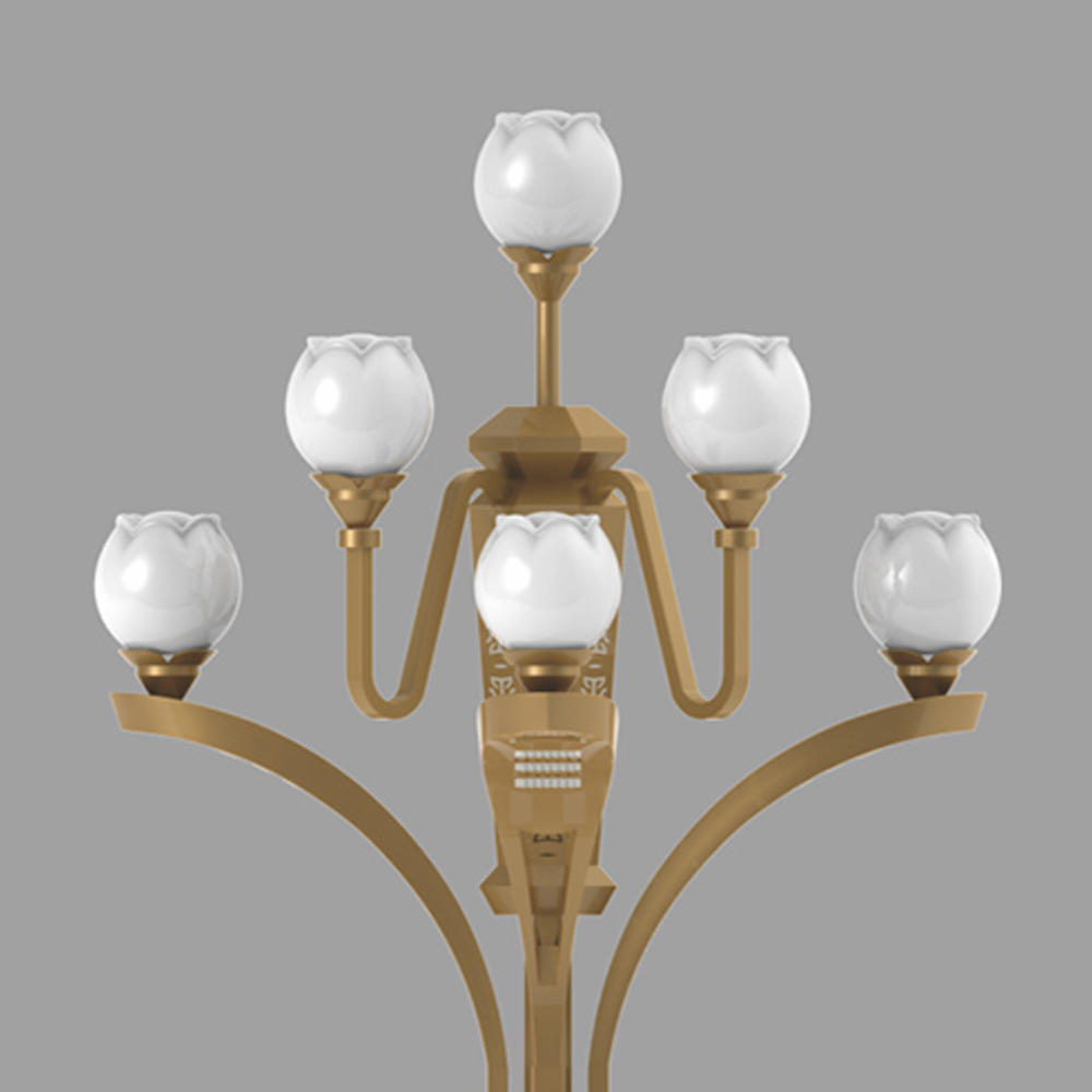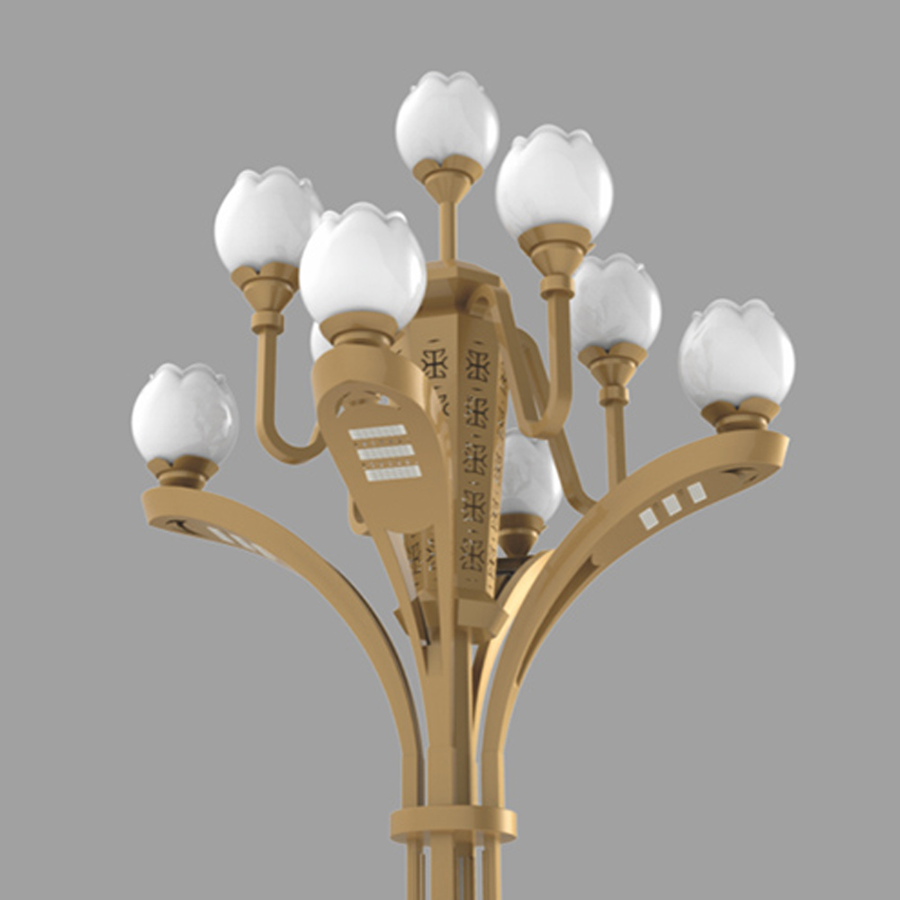 中華燈是一款極具中國(guó)特色,外觀大方的多等頭燈具。芙蓉中華燈是在傳統(tǒng)中華燈的基礎(chǔ)上進(jìn)行了改良,保留其神韻,切加入新的元素,巧妙的運(yùn)用花瓣的形式,實(shí)現(xiàn)了燈桿與燈頭的實(shí)體連接;