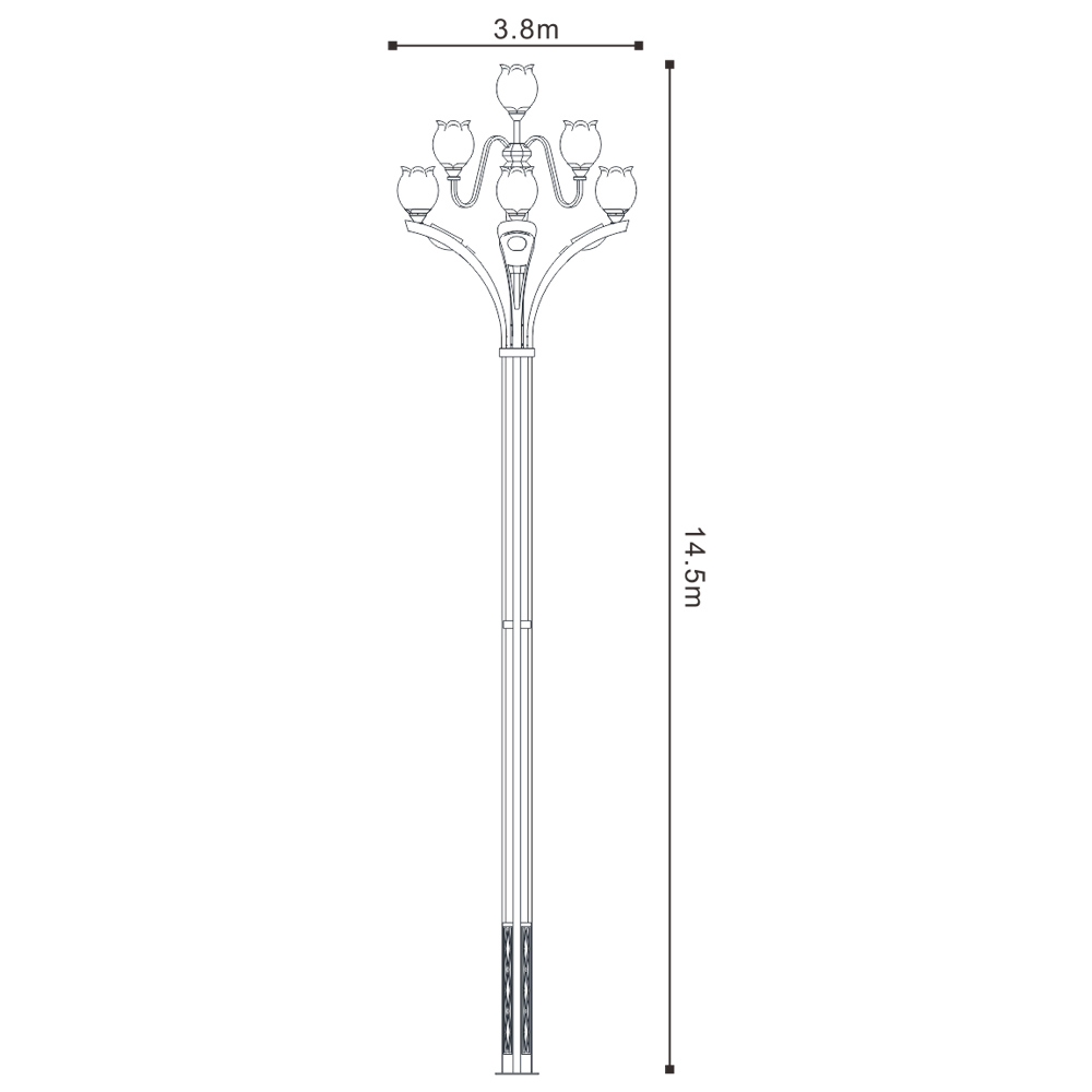該款燈可以在原有景觀照明基礎(chǔ)上,增加了功能照明,使功能照明和景觀照明完美結(jié)合。可將LED光源巧妙的配置于戶外文化定制燈具中,替代傳統(tǒng)鈉燈及節(jié)能燈光源,使用革命性創(chuàng)新,在不影響使用及美觀的情況下,降低該類裝飾性景觀路燈的功率密度,切可在桿體內(nèi)側(cè)加裝華體單燈智能照明管理系統(tǒng)。