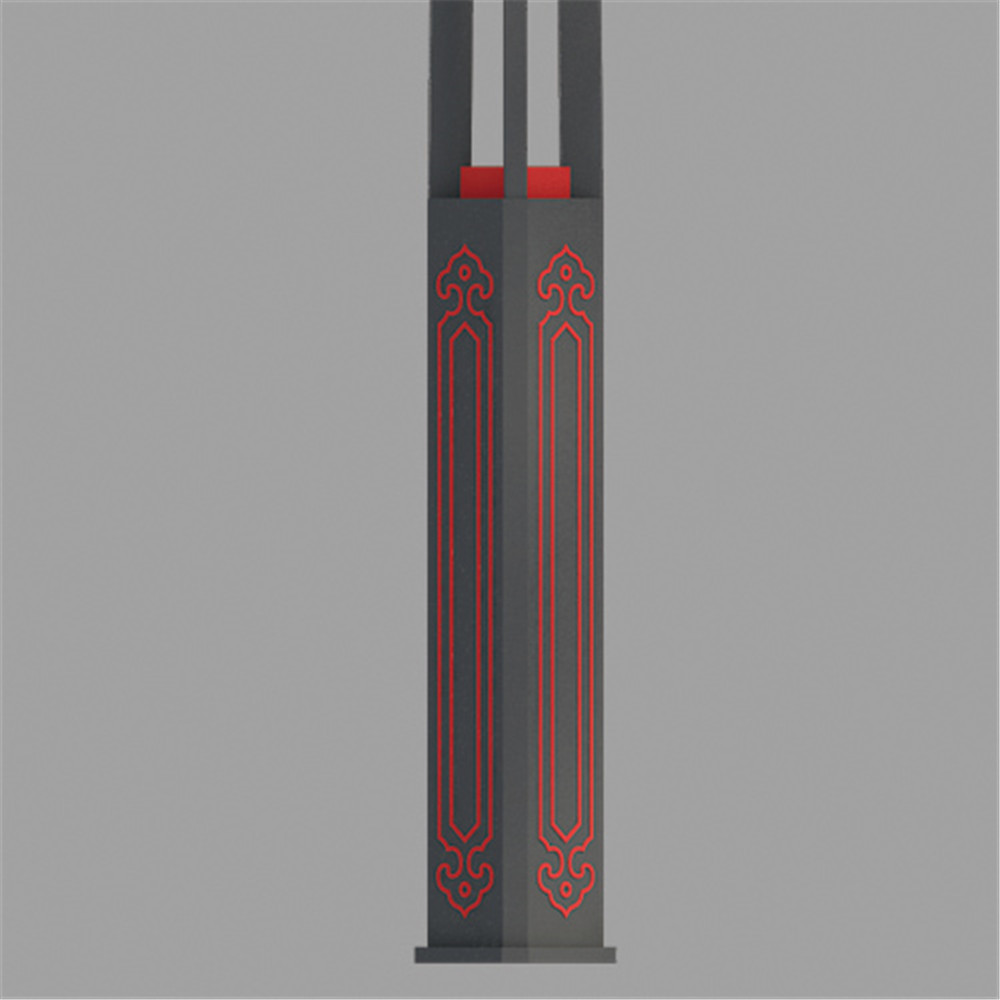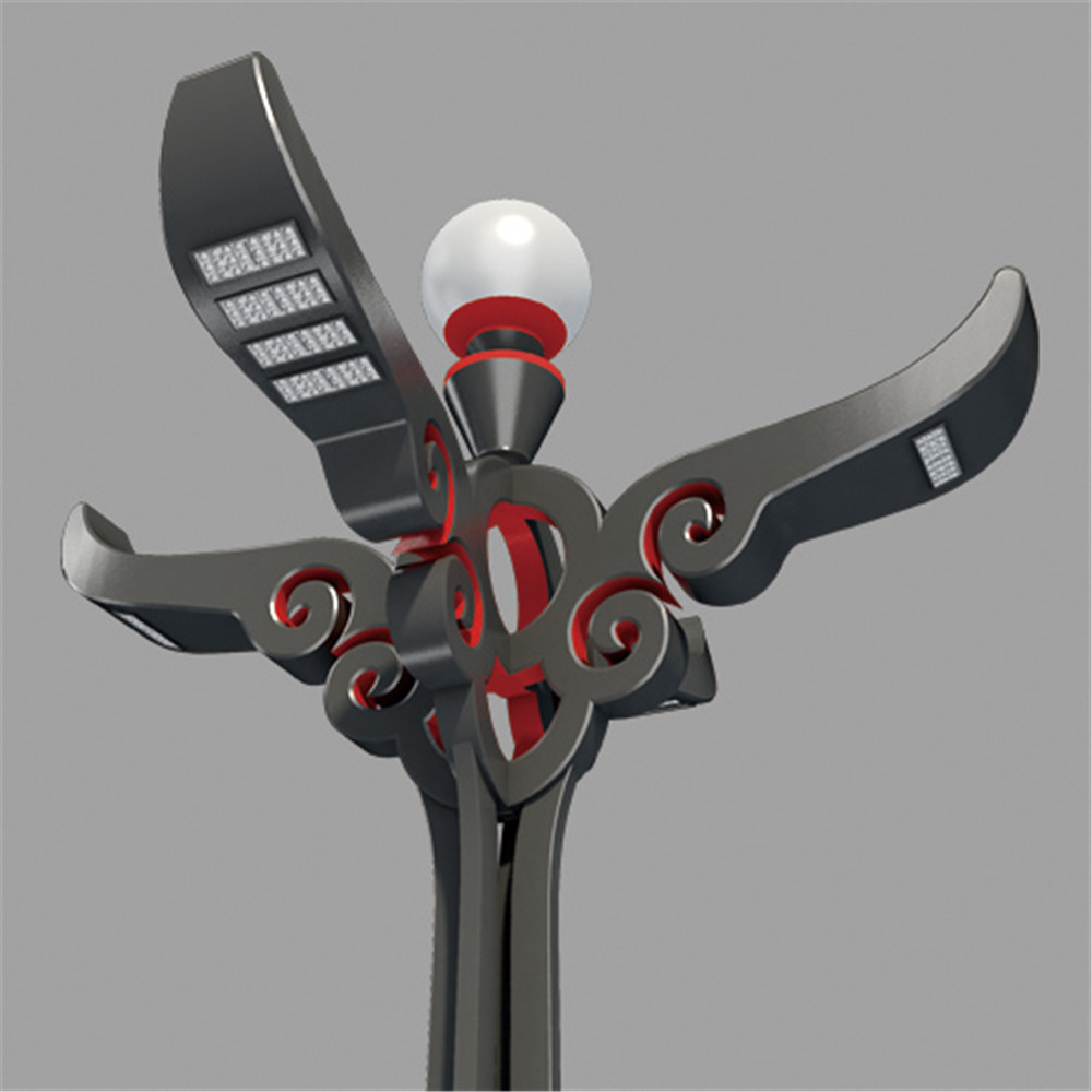 以傳統(tǒng)如意紋樣為元素,與牛角相結(jié)合。將吉祥如意的美好愿景與燈具相結(jié)合。如意紋中部內(nèi)透光裝飾為城市景觀照明增添一抹亮色。