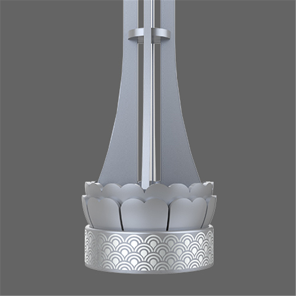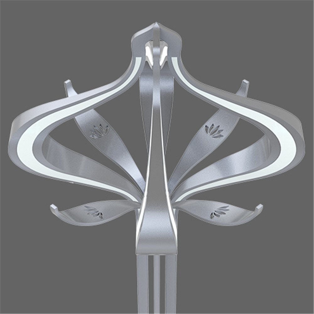 現(xiàn)代的蓮花抽象成佛教金剛杵的形態(tài),內斂棚合的造型是雙手合十的禪意,前衛(wèi)而充滿佛性,精致脫俗的蓮花水紋底座詮釋蓮花的出淤泥而不染;