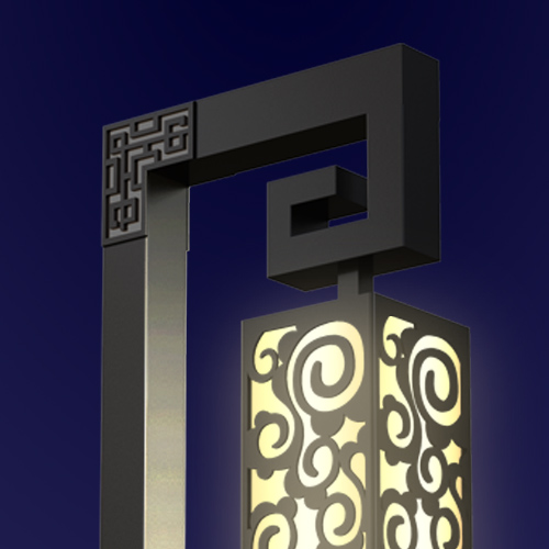 燈型材質(zhì)以優(yōu)質(zhì)鋼材與木紋漆為主,整體燈型采用現(xiàn)代的設(shè)計手法,融入傳統(tǒng)窗花和祥云元素,燈型整體簡潔、現(xiàn)代。